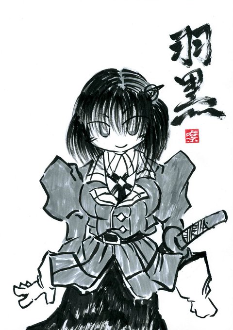 筆ペン一発描き、モノクロ🎴で😊