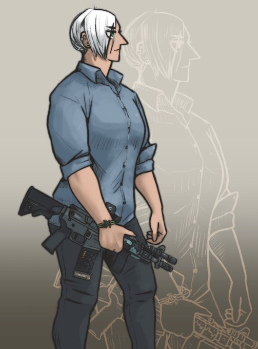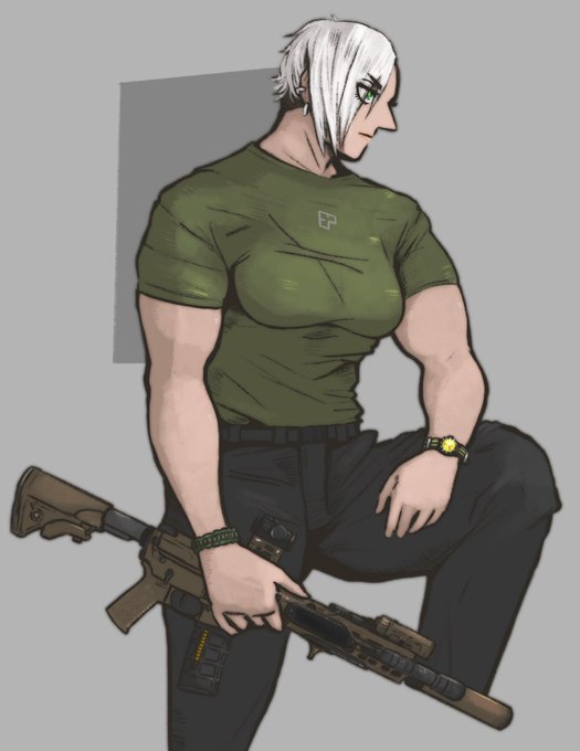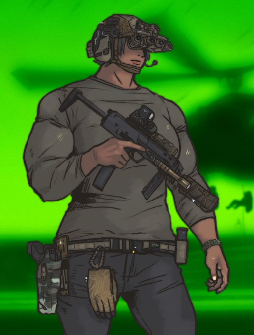 創作話垂れ流し・ずっと鉄砲・気分でミリタリー&筋肉関係ない自キャラのOL絵描いたりします