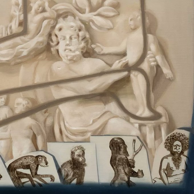 モチーフにしたのは、コンスタンティン・ハンセン『Prometheus Creating Man in Clay』、アダムとイヴの写本を布に投射したもの、プロメテウスが人類を作っている場面のレリーフ、人型の粘土細工、エルンスト・ヘッケルの進化論のイラスト、エジプトのクヌムの影絵です。