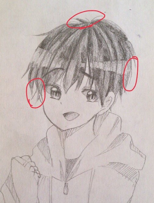 #細かすぎて伝わらない僕の私の描いてて楽しい所 ぴょこぴょこでてる髪の毛。笑笑