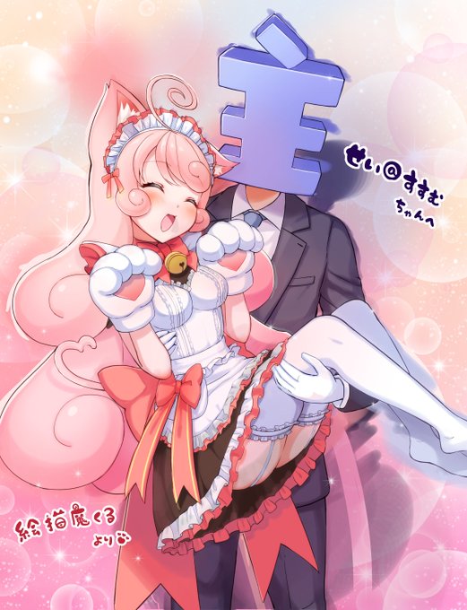 絵描魔くる さんのコミッション「ご主人さまに抱っこされて嬉しそうにしてる絵描魔くるちゃん」