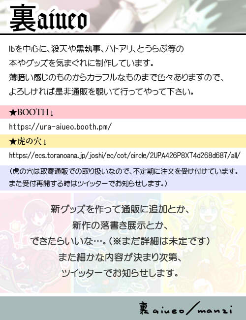 本日webオンリーに参加させていただきます。数年振りのIbです、どうぞよろしくお願いします。