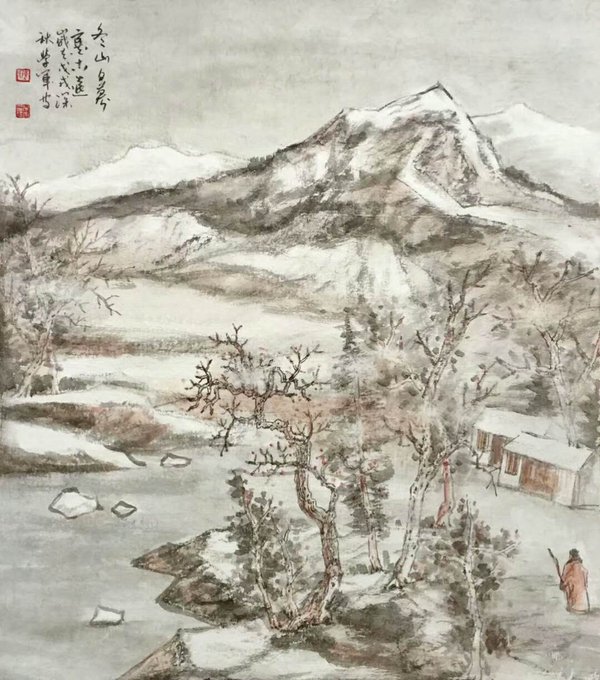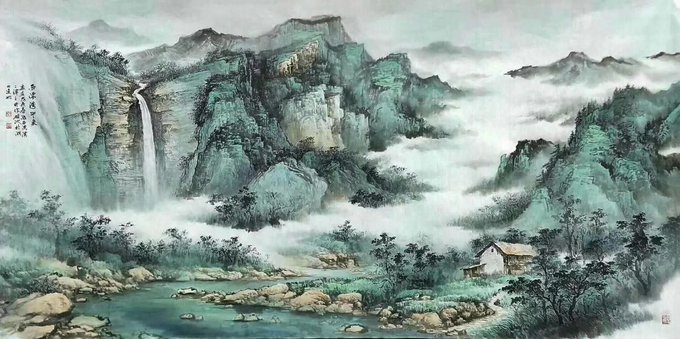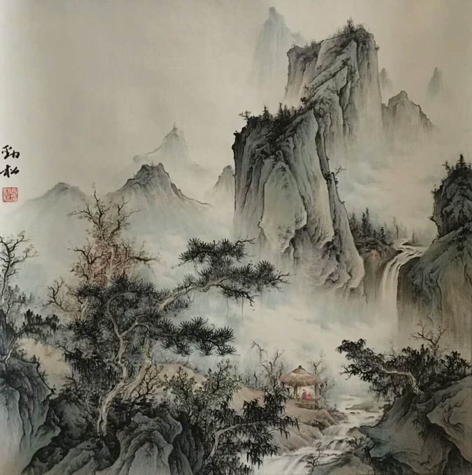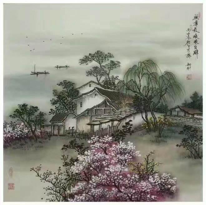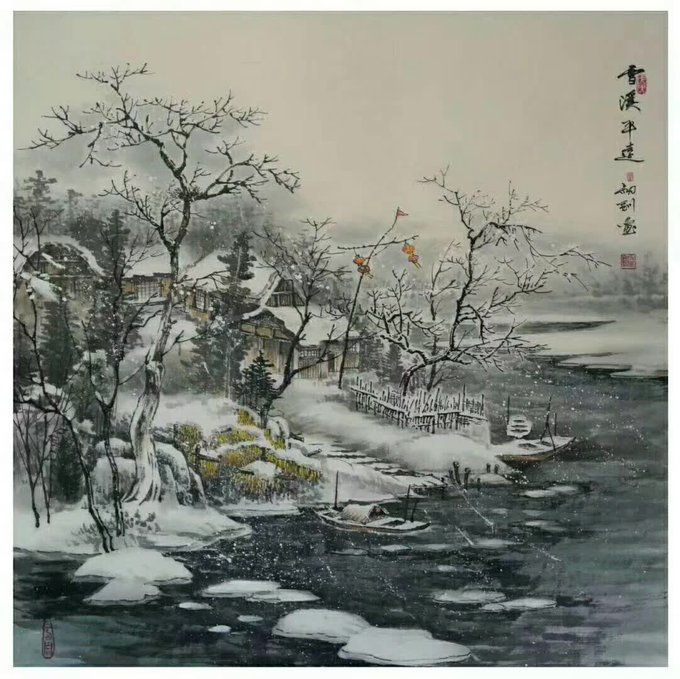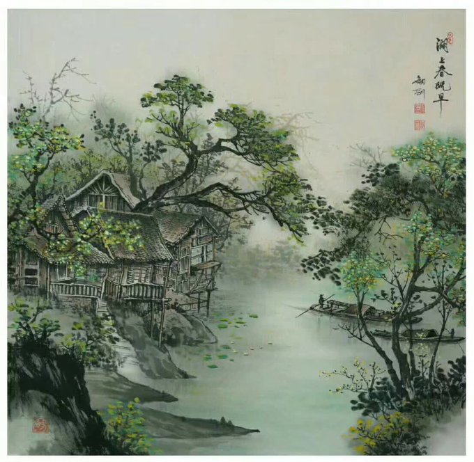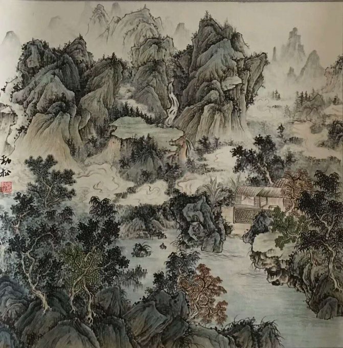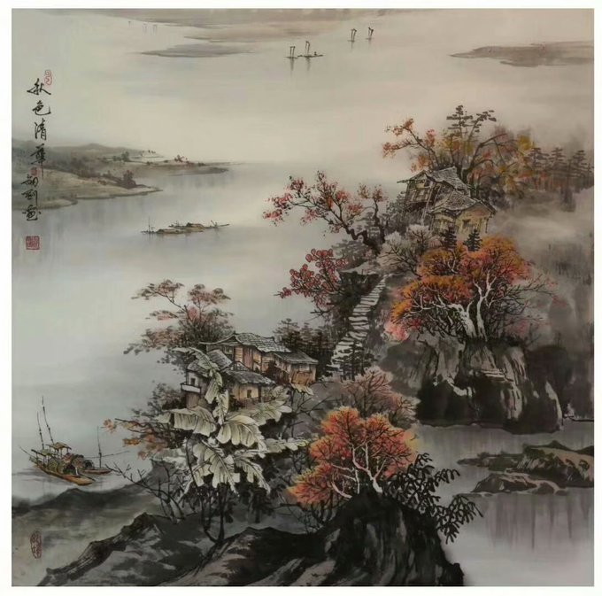 水抱孤村远,山通一径斜。不知深树里,还住几人家……国画 68cmx68cm #Chinesepainting #Art #Gallery #國藝 #中國畫 #油畫 #藝術 #养生 #品鑒 #經營書畫 #作品出售