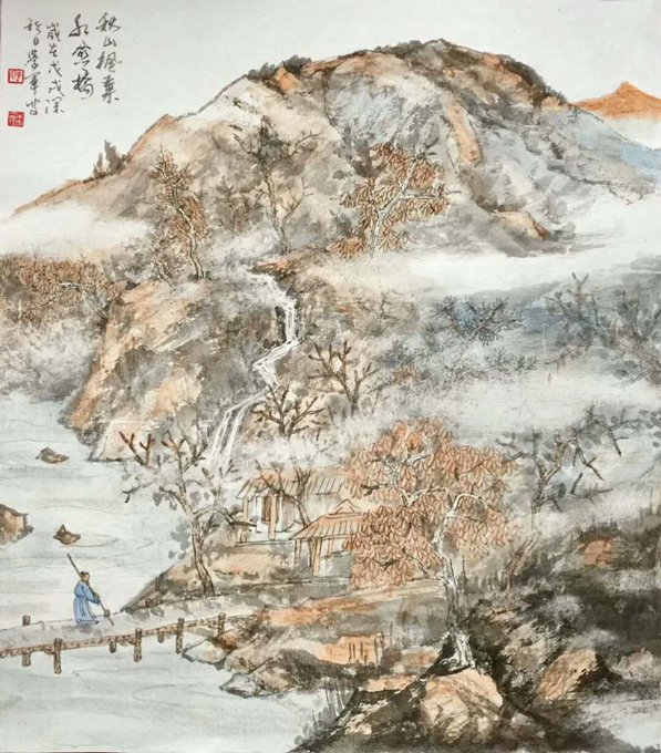 劳歌一曲解行舟,红叶青山水急流……秋山访友,国画68X68cm #Chinesepainting #Art #Gallery #國藝 #中國畫 #油畫 #藝術 #养生 #品鑒 #經營書畫 #作品出售