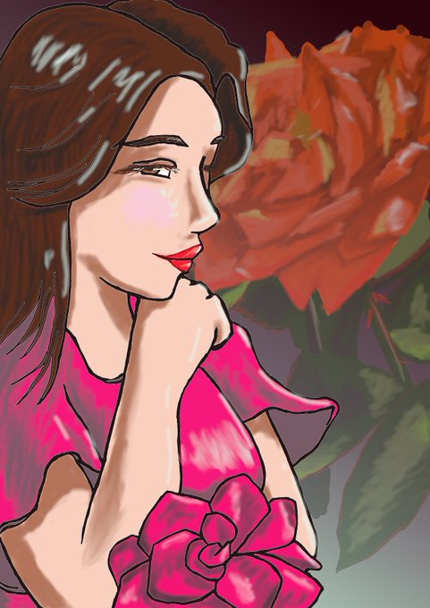#花 といえば #バラ かな…ということで描いてみました。若干ハロウィンテイストも入れつつ。花びらが複雑でギャーってなったので、これでご容赦くださいー。