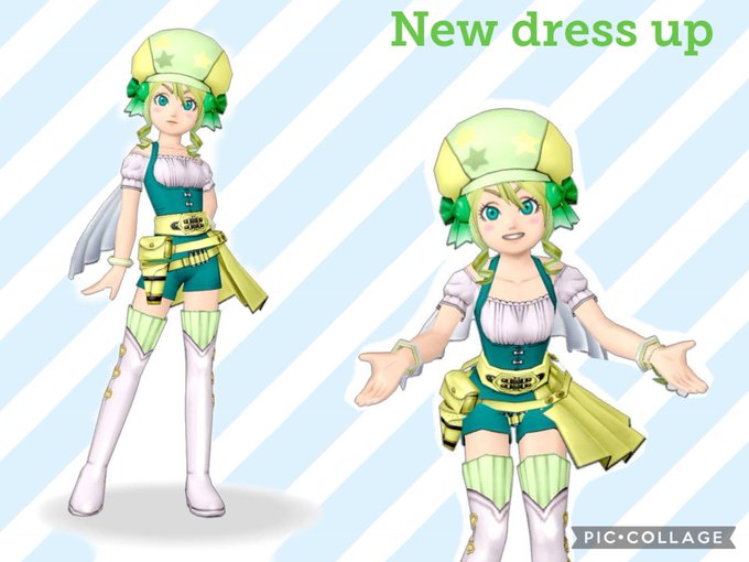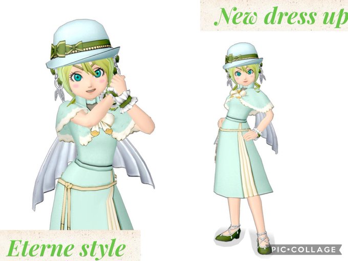 新作緑ドレア作りました! ももんじゃの上を使ったドレアです✨ 夏に合わせた爽やかなサマーコーデになります♪また一つお気に入りができました✨ ももんじゃ頭ドレアはまた後日✨ #DQX #DQX10 #緑ぴかさんドレア