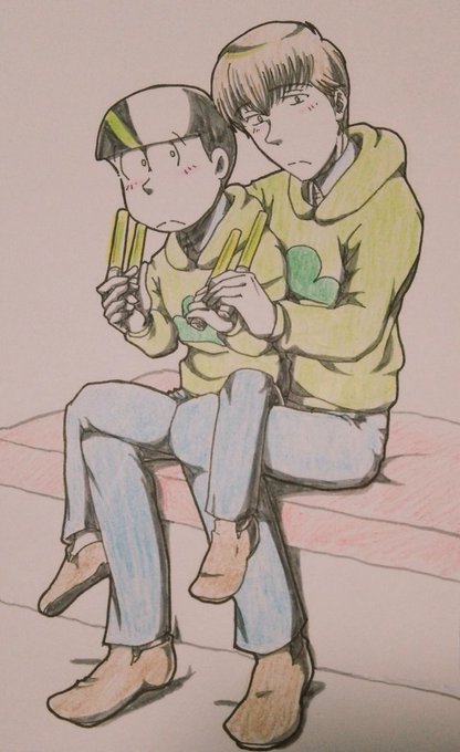 なんかみどりの日で緑画像をあげるとかやってたんで考えたんですが、何故か公式寄りのチョロ松と自分絵チョロ松がいちゃついた(?)絵に。な、何が起きたんだ…。