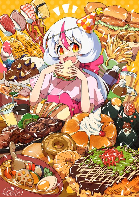 金平糖とかバーガーとかお月見辺りも気に入ってるけれど選びきれなかった。だいたい何か食べる土沖ちゃんたち😌🍡💚🧡