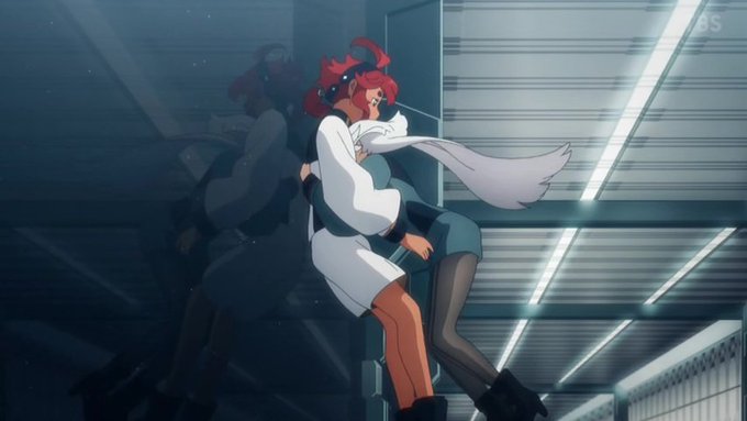 スレッタが後ろから付いてくるからみっともない真似はできない、とカッコつけ続けたミオリネとそんなミオリネを慕って必死についていったスレッタ。