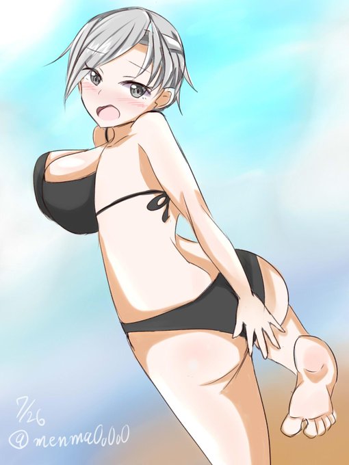 学校にプールの授業??があるので下に着ていく電ちゃん