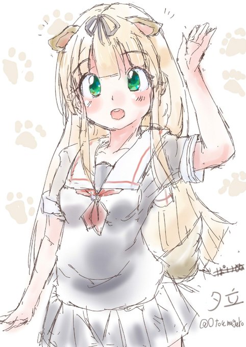 夕立٩( 'ω' )و 絶対ケモミミつけたらもっと可愛いくなると思ったので描きました! うn。いいっすねぇ...。 #艦これ #夕立 #艦これ版深夜の真剣お絵描き60分一本勝負 #艦これ版真剣お絵描き60分一本勝負_20160420