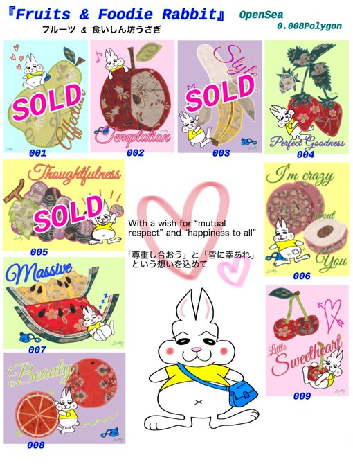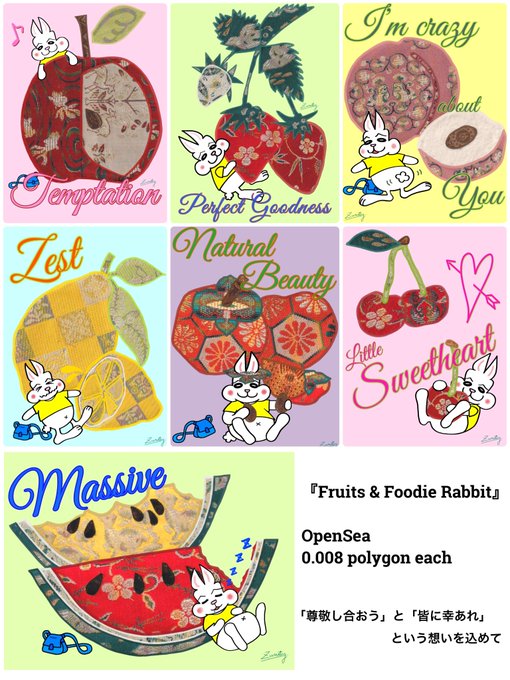 綺麗な和柄フルーツと愉快な食いしん坊うさぎのツーショット作品はいかがでしょうか🤗