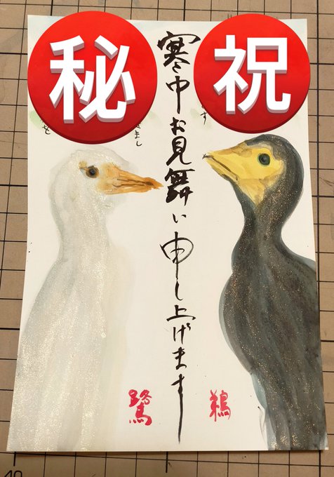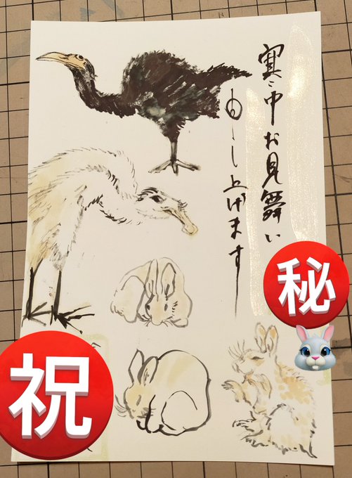 年賀状代わりの寒中見舞いをやっと描いた。