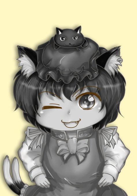 色塗り途中で白黒にした時の橙(´▽`*)アハハ