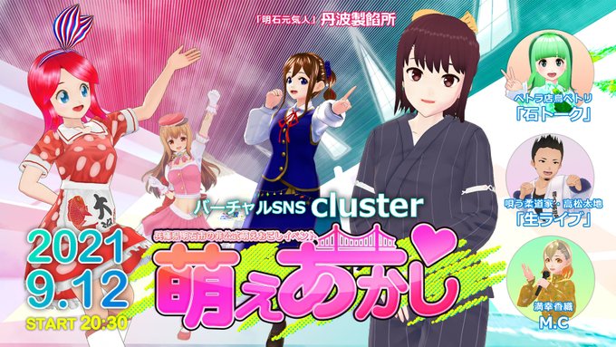 サブカルチャー視点から #明石市 (でガンバるお店や人も)を勝手に応援しちゃう非公認 #ご当地VTuber 赤石夕コ(あかいしゆうこ)ですっ!(≧▽≦)🐙✨ 9/12(日)20:30から #cluster で #萌えあかし ONLINE6というオンライン萌えおこしイベントを開催しますっ!📢