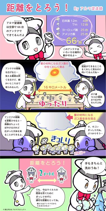 ちなみに、アルマ望遠鏡のアンテナ間隔は最小で8.7m、最大で16kmです。