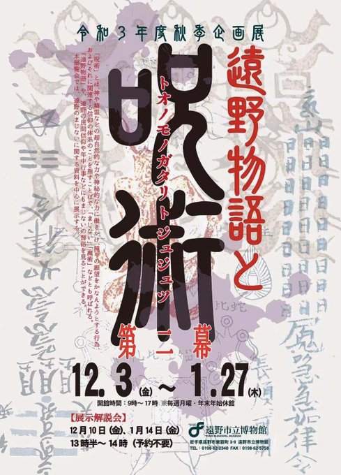 雪でJRの運転見合わせが頻繁に見られたのとコロナのこともあり、悩みに悩んで前日に旅行取り止めたけど、実は昨日から2泊3日の予定で遠野(お目当ては遠野市立博物館 @tonomuseum )へ行く計画を立てていました😂 企画展「遠野物語と呪術」第三幕開催を切に願います🙏 https://t.co/mOB6uKlZiK