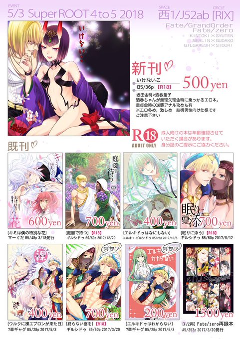 【固定】5/3スパコミ、Super ROOT 4 to 5 2018のお品書きです