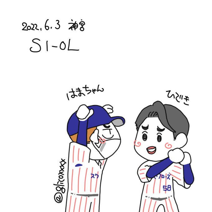 私の周りに長岡さんと木澤さんファンが増えてて嬉しい! そして塩顔?醤油顔?って悩む所でしたが塩分補給で塩顔男子に☺️ 若い方々の成長は嬉しいし明日はすわほーできますように🐧 #木澤尚文 #長岡秀樹 #Swallows #イラスト