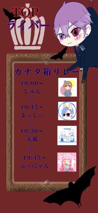本日18時よりカナタのイベラスへ繋ぐ箱リレーを下記メンバーでやります(๑•̀ㅂ•́)و✧是非見に来てね✨