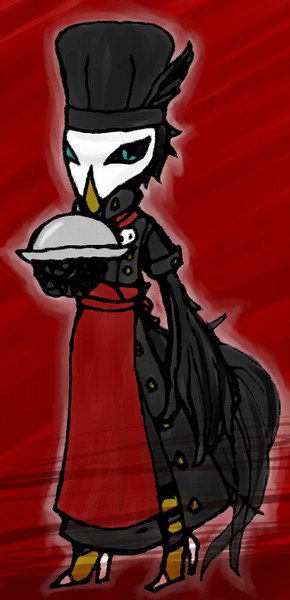 おまけのニスローグさん過去絵&紹介。 暴食を司る上級悪魔グラニー(3枚目)に仕える料理人で、禁断の林檎を用いた料理で人を食の誘惑に導く悪魔(堕天使) ちなみに元ネタ悪魔の「ニスロク」は鷲頭だそうですがニスローグさんは趣味によりカラス系鳥人です。