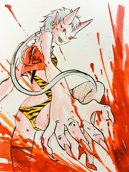 こちらは今、ギャラリーソラトさん(@SawsinSchwarze)にて鬼彩【伍】へ出展中の「Beautifull red」です。 額装原画の通販はソラトさんのDMまでお問い合わせください。 #鬼撒き