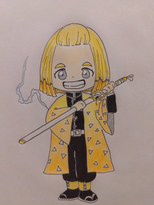 保育園の子どもたちはいまだに鬼滅ごっこを楽しんでいる。特に女の子! 人気はしのぶ、カナヲ、蜜璃あたり。 しかしうちの娘は断然、善逸推し(^^) #イラスト好きさんと繋がりたい #霹靂一閃 #夏の創作クラスタフォロー祭り