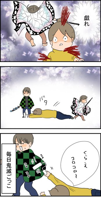 「鬼滅ごっこ」 #四コマ漫画 #4コマ漫画