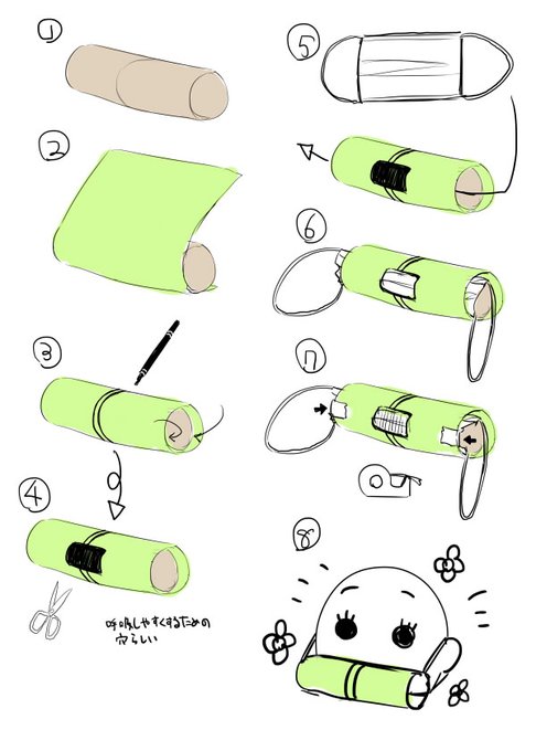 鬼滅ごっこしてたら「ちょっと待ってて!!」って小2の長女が末っ子のためにこんなかんじの作ってきた(^ω^) マスク使う発想やるなー