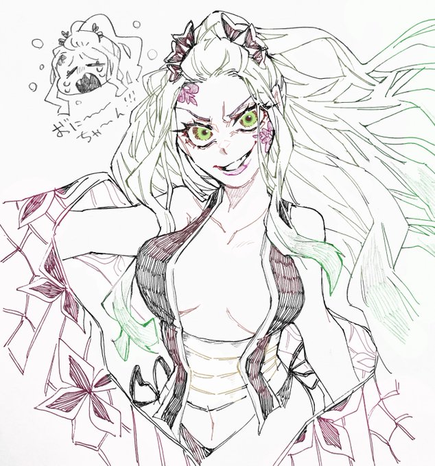明日、仕事の諸事情で鬼滅最終回リアタイ出来ないクソっコノヤローっっ!!!!……ってフラストレーション込めて? 初描。ホントは妓夫太郎お兄ちゃんも描きたかったけど私の技量で間に合わなんだ…ぅぅ…梅ちゃんリアタイで観たかったよぅ…遊郭編で一番好きな回なのに… #鬼滅の刃 #堕姫