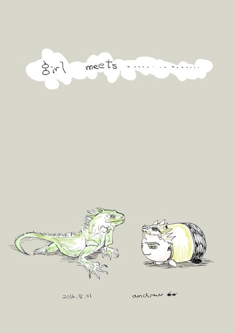 こんなタグが…! つい最近の絵な上に牛さんも一緒だけどももももも。 #黄金週間だよゴールデンだよライアン描こうぜ
