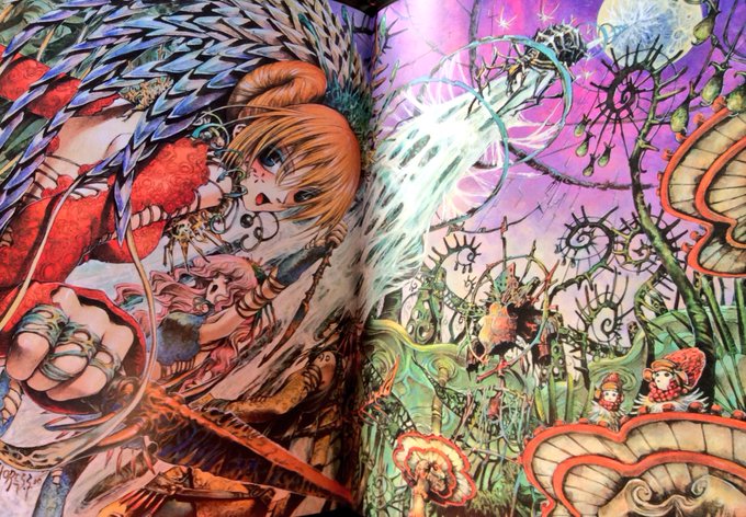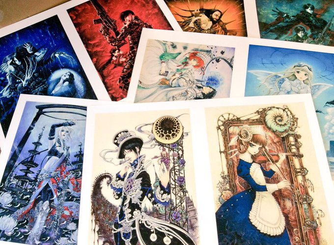 今回の個展はオリジナル画等の新旧原画販売と、商業作品を複製原画ジクレーで受注販売してます(黎明の書&画像4)。その他商業作のトリニティ・ブラッド、バチカン奇跡調査官、悪魔交渉人、シザーズクラウンの原画を特別展示しております。