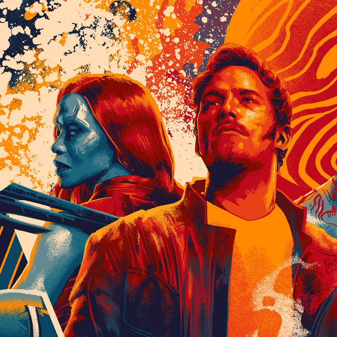 로켓이 입는 새 옷 네뷸라 피부색이라 같이 보이는 장면에서 보니까 코믹스 버전보다는 채도가 꽤 낮은 파란색인 것 같고… 아맥 새 포스터 최상단 양쪽에 각각 퀼가모라 있는 거...^_T