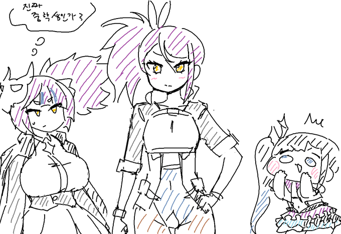 오늘 그림판 리퀘스트 그림 2 -간호천사 엘라 -뮤즈 -그랑삭스의 벼락 전투기술 쓰는 유미 -코튼가드 우르