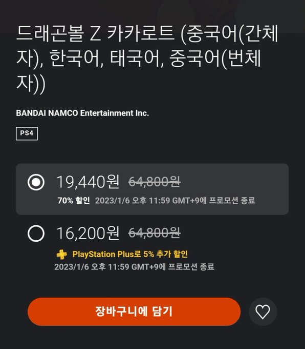 📢[한국e숍] 드래곤볼Z 카카로트➕️새로운 각성 편 -60% 할인 (~12/14)
