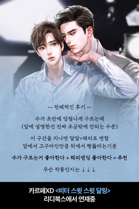 [RT이벤]호벤작가님과 제가 함께 만든 GL만화<비터스윗콘파냐>가 리디북스에서 재연재를 시작했어요😍1일2화씩 오픈될 예정이니 다시 뵙는 분들께도, 처음 보신 분들께도 잘 부탁드립니다🥰RT해주시는 분들 중 5분께 유성이가 좋아하는 프라푸치노를 드려요🥤(당발:8/19 0시)