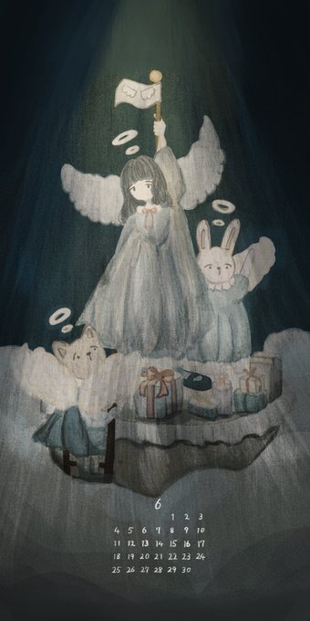 LINE VOOM(旧タイムライン)に女の子のイラスト投稿しました☺️6月のカレンダー付きです☺️