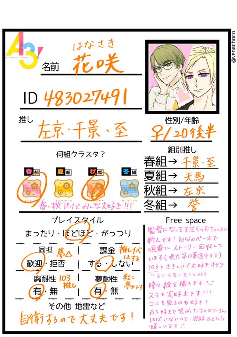 A3!の絵を描きます!!まだまだ練習中だけど、お友達が欲しいです!!