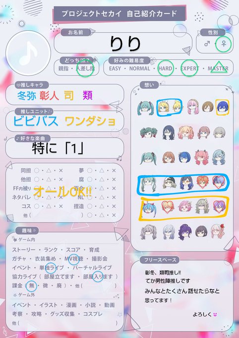 #プロセカ自己紹介カード