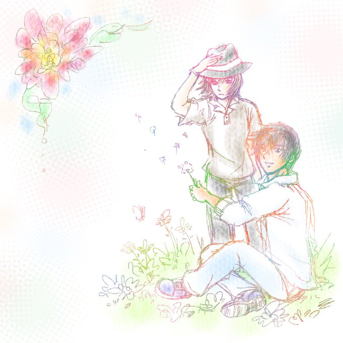 こういうのしか出来ませんでしてすいませんです。ちょっとした花畑にいると思ってください。 #セカロマ深夜の真剣お絵描き60分1本勝負 #1日1のわヒロ #1日1エゴイスト