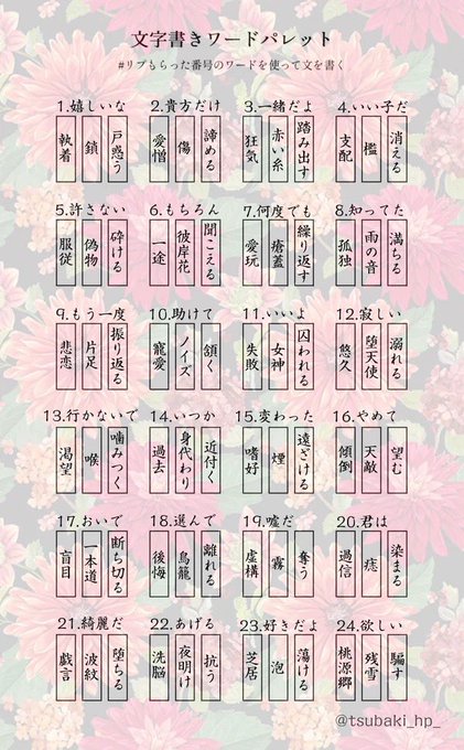 さすがに番号ごとには書けそうにないので書かれているワード一つ一つをお題に……