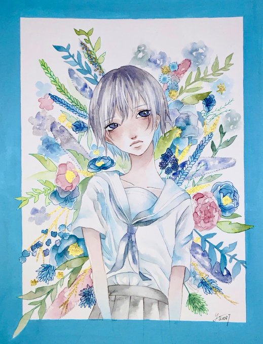 主に透明水彩で人物を描き、情景や感情をモチーフとともに描きます。