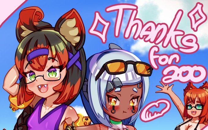 Ehe!~ I want to thank each and every single one of you for being so amazingly kind and supporting. Here's a gift (Due to popular demand, beach episode!) for helping me reach 200 followers on Twitter and Twitch, almost 200 on Sketchfab and 100 on Pixiv. 💚🤍🧡💜