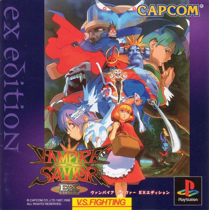 @magicalririruru it's a fighting game by capcom!! all the fighters are based off of some sort of monster trope, save a couple few. there's only been about three games in the series, with a recent rerelease of every game, including japanese only ones, as part of Capcom Fighting Collection!