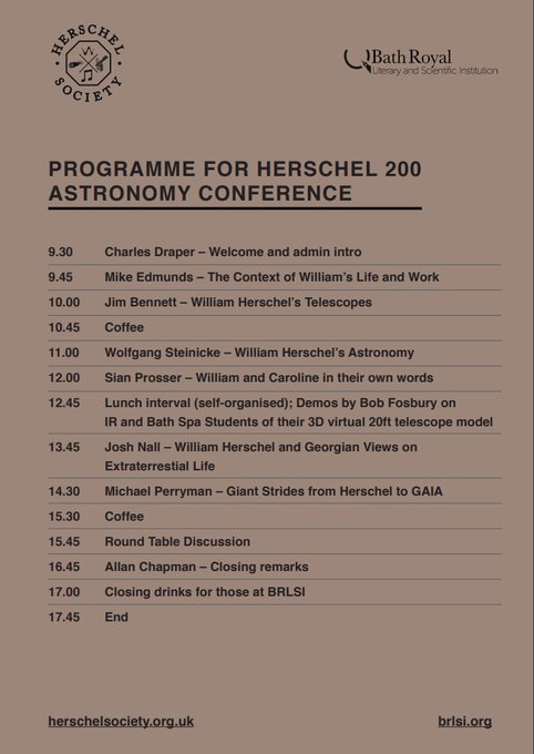 Save Sat 1st October for William Herschel's Astronomy at @BRLSI organised by @c_herschelsoc. A conference to put his work into context and discuss his legacy. Available in-person and online: https://t.co/yD4TI6aBNB #Herschel200