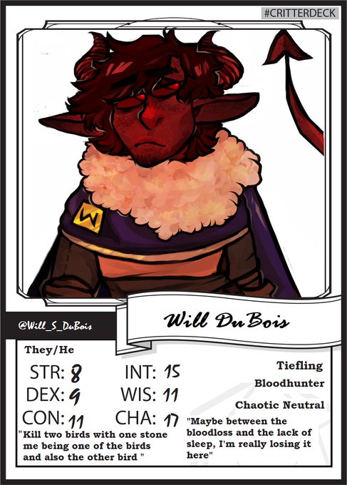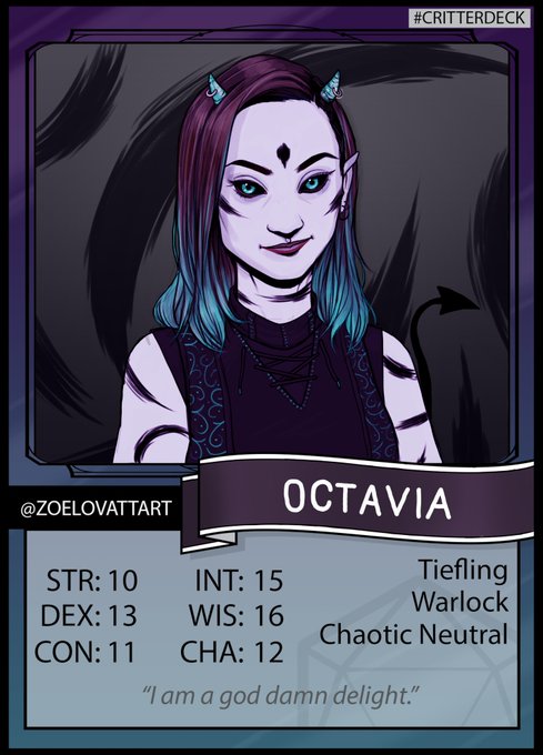 My card for the #critterdeck hashtag. Love me some horns and some dark magic so duh it was #tiefling #warlock.