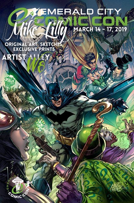 See you guys there! #EmeraldCityComicCon #ECCC2019 #ECCC Artist Alley W8. #OriginalArt #sketches #exclusiveprints #Detective1000 #Batman #ComicArt #comicbooks #artwork #art #Robin #Joker #Catwoman #Scarecrow #Penguin #Riddler #SeattleWA #reedpop #mikelillyart #mikelilly