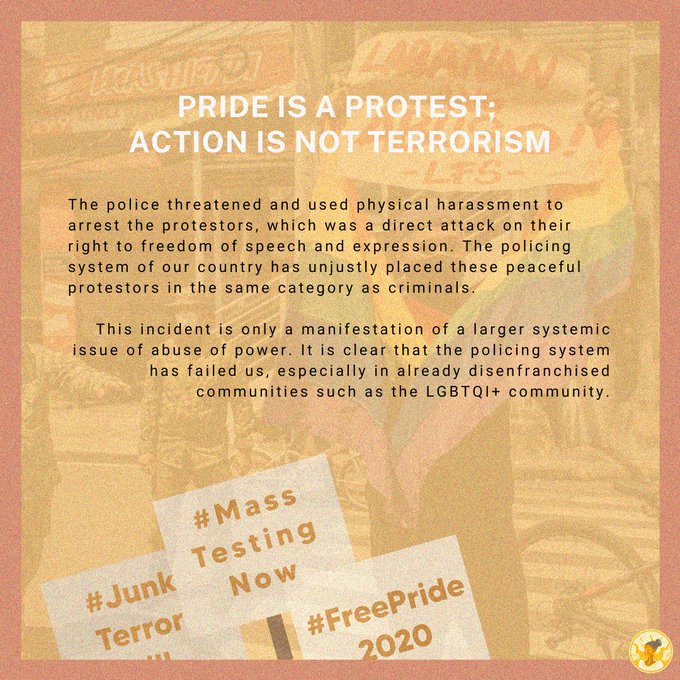 #FREEPRIDE20 #JunkTerrorBill #MassTestingNow