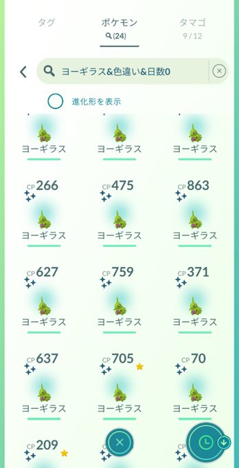 ヨーギラスコミュデイ復刻お疲れ様です😊💕今回は寒すぎてカフェに避難したので色違いは控えめ24匹🥰🙏初めてコミュデイで違うポケモンの色違いが出た〜🥳ずっと欲しかったマグマッグ🔥