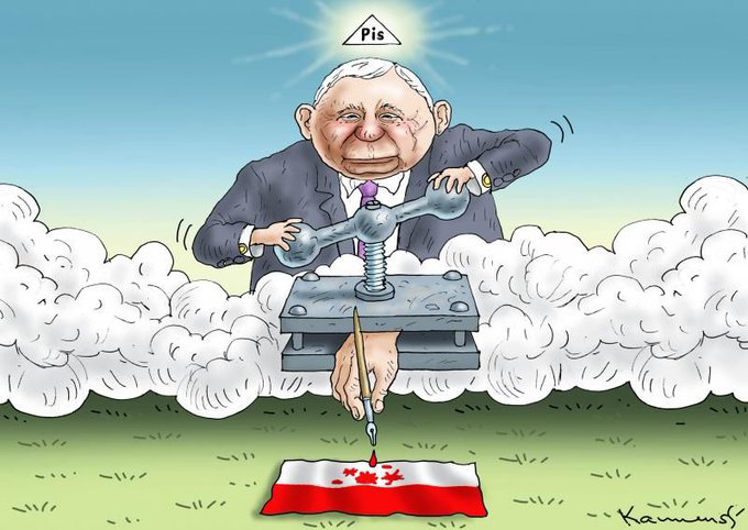 New media law in Poland. Cartoon by Marian Kamensky: https://t.co/wVLmh3l2tz